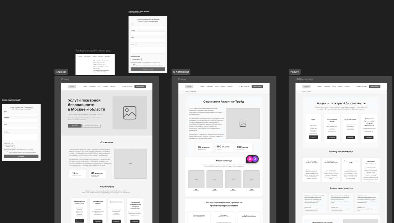 - Создание прототипа сайта. На основе технического задания разрабатываем структуру страниц, готовим тексты и проектируем пользовательские сценарии: формы заявок, квизы, калькуляторы для расчета стоимости услуг. Все решения отражаем в прототипе;