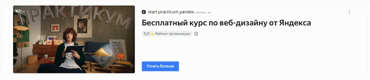- Динамическая — подстраивается под интересы пользователей. Например, пока мы изучали материалы о маркетинге, чтобы написать для вас эту статью, в Яндекс Погоде начали отображаться объявления с обучающими курсами на тему интернет-маркетинга